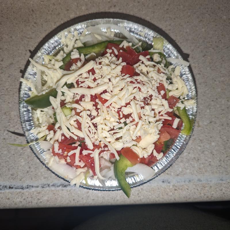 A bed of fresh lettuce, tomatoes, bell peppers, onions and shredded cheese, with your choice of dressing.