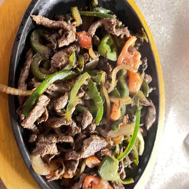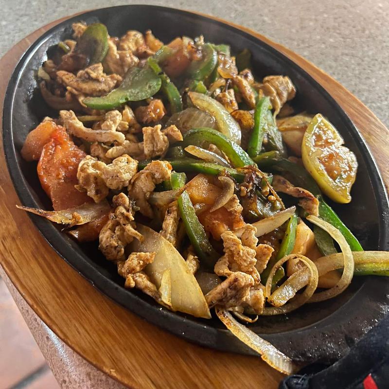 Steak or chicken cooked with bell peppers, onions and tomatoes. Served with rice, beans, pico de gallo, lettuce, guacamole and sour cream.