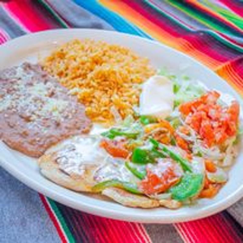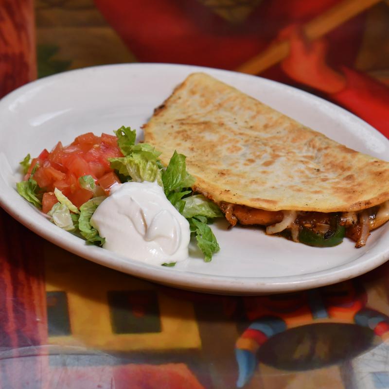 A flour tortilla folded and filled with chicken or steak, onions, bell peppers, tomato, and cheese. Served with lettuce, tomato, and sour cream | Add Flour Tortilla +$0.65