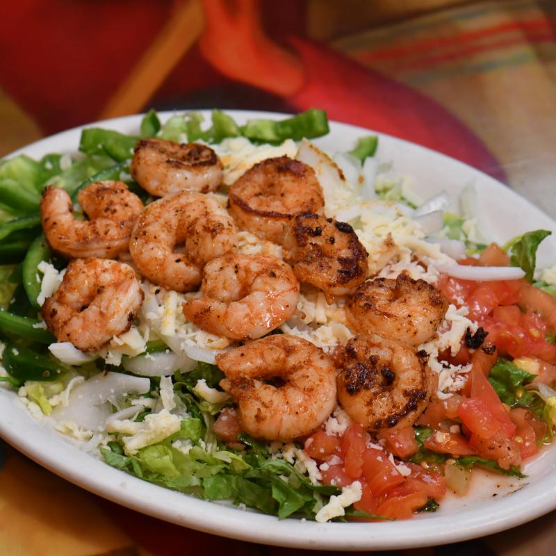 Chicken $10.99 | Shrimp $11.99 • A bed of lettuce, onions, bell peppers, tomatoes and shredded cheese.
