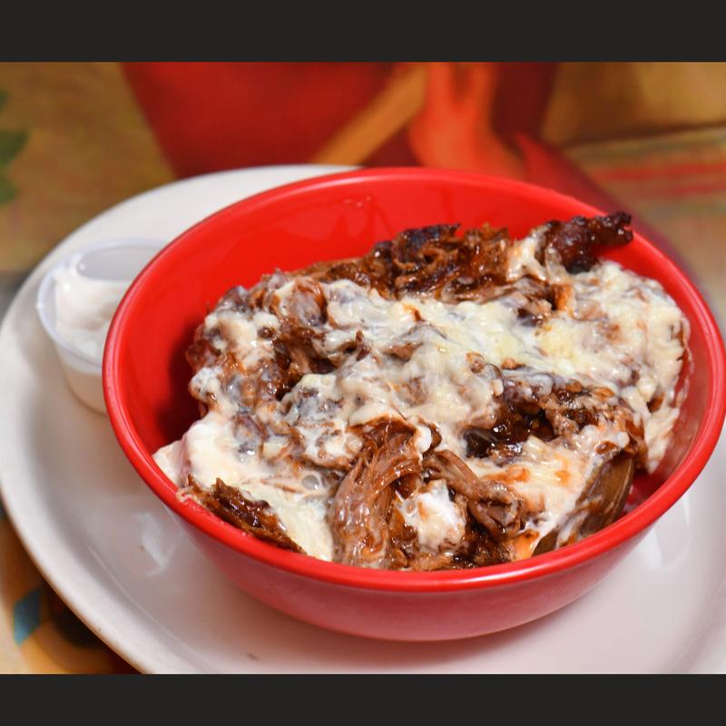 Steak $13.99 | Chicken $12.99 | Combo $13.50 | Shrimp $14.50 | Mixed-chicken, Steak and Shrimp $15.99 | Brava-Chicken, Steak, Shrimp and Chorizo $16.99 • Crispy tortilla chips topped with cheese, onions, bell peppers, tomatoes and your choice of meat.